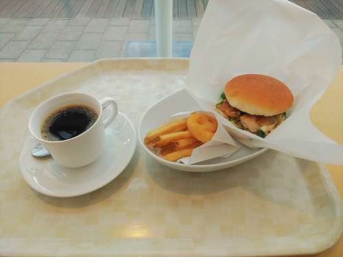 こちらは、「岩津ネギバーガー」。たっぷりの岩津ネギとやわらかい但馬鶏がジューシーで、わさび風味のソースが絶妙です。セットのポテトの中に1つだけ穴のあいた丸い形は、スマイリー型のかわいい演出でした。