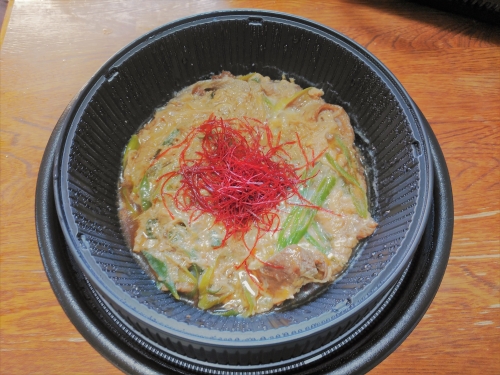 岩津ネギのシーズンに合わせて、お家で食べられる特別なテイクアウトメニューも販売されています(2021年3月頃まで)。「岩津ネギ但馬牛すき焼き丼」と「但馬牛すじ丼」の2種類。やはりおネギは、甘辛いこういったすき焼き風味の味が合いますね!