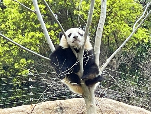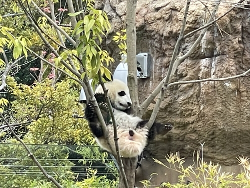 エリア1で、木の上で眠りに入る「シャオシャオ」と、元気に動き回る「レイレイ」を観覧できました。