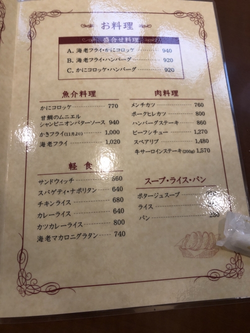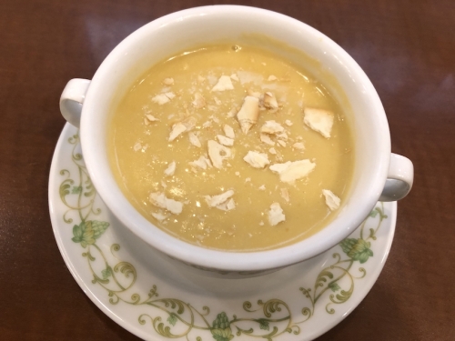 ポタージュスープ(コーンポタージュ)も期待通りの洋食屋の味といった内容で美味しかったです。盛り合わせC・ライス・ポタージュスープの3品で1,320円でした。