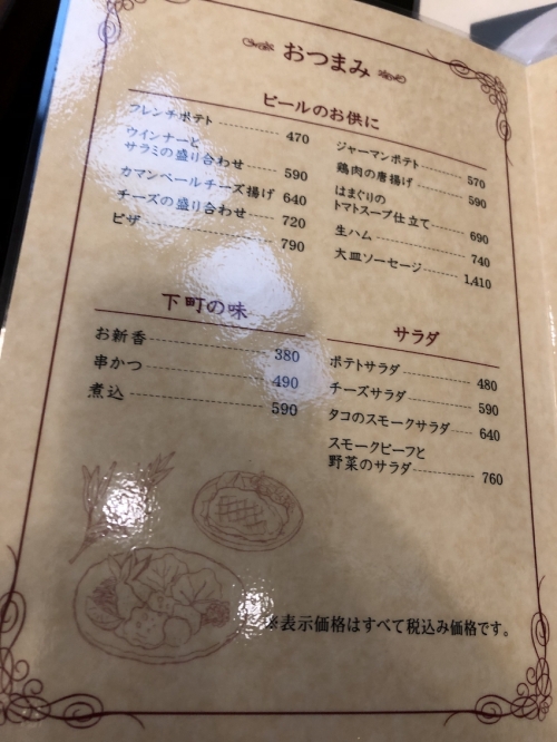 テーブルには「神谷バー」とプリントされた割り箸や、「KAMIYA」とプリントされたナプキンなどが置かれています。ナプキンのデザインからは、なんとなくドイツのビアガーデンのような趣を感じました。