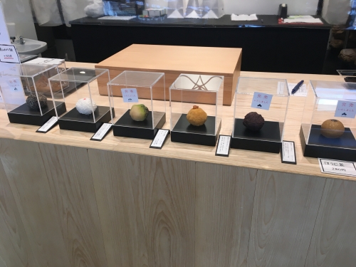 おはぎの味は主に6種類。無漂白・無添加の有機ココナッツ味の「新月」、京きなこと黒糖くるみの「満月」、みたらしあんの塩味おはぎの「夕月」、白餡と赤餡が美しい「半月」、王道おはぎの「暁月」、そしてゴマが香る「宵月」(1個200円〜)です。