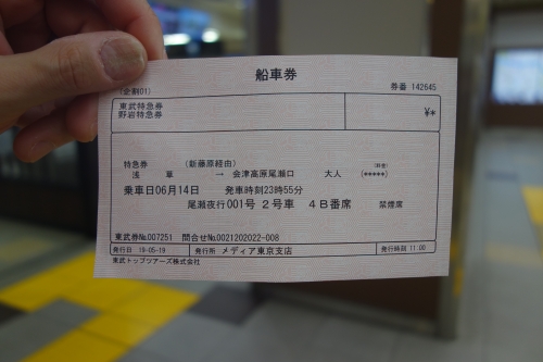 JRが鉄道・船の切符を「乗車券」ということから、さらに鉄道会社が発行した切符と区別するため、旅行代理店が発行する切符は「船車券」という名称が使われるようになりました。旅行代理店によっては「クーポン」という名称を使用する場合もあります。要は「乗車券」と区別できればよく、東武ツアーズでは、クーポンと船車券の両方を発行しているというわけ。それでは今回それぞれどのように使うのか、尾瀬夜行にいよいよ乗車してみましょう!