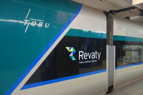 こちらは東武鉄道特急列車500系「リバティ」です。リバティは2017年の春に運行が開始された新しい車両で、英語では「Revaty」。これは造語だそうで、多線区での運行を実現する「Variety」と、路線を縦横無尽に運行する自由さ「Liberty」を組み合わせて(かつVarietyの文字を並びをかえてr(i)e・va・ty)、Revatyとなったのだそう。