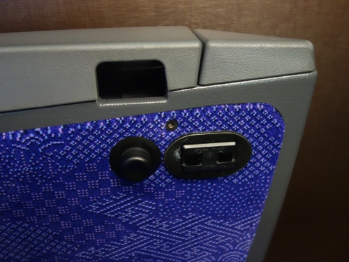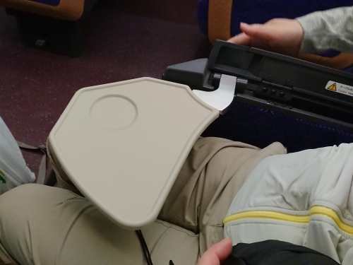 アームレストには、コンセントもあるので寝ている間にスマホを充電することもできます。車内には無料Wi-Fiも飛んでいますが、寝てしまうのであまり出番はないかも。アームレストにはテーブルも隠されています。