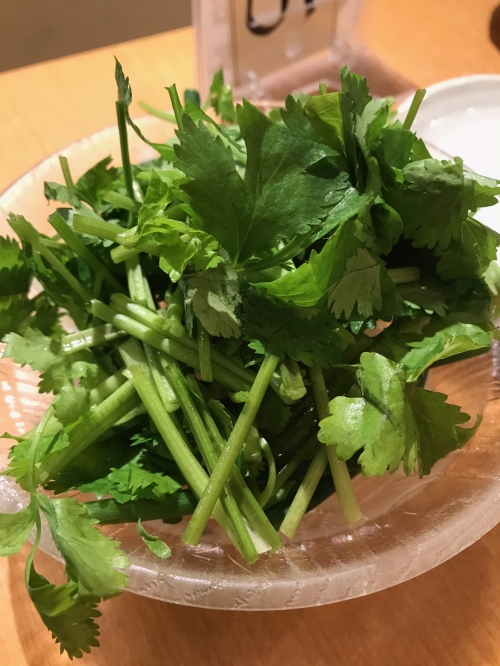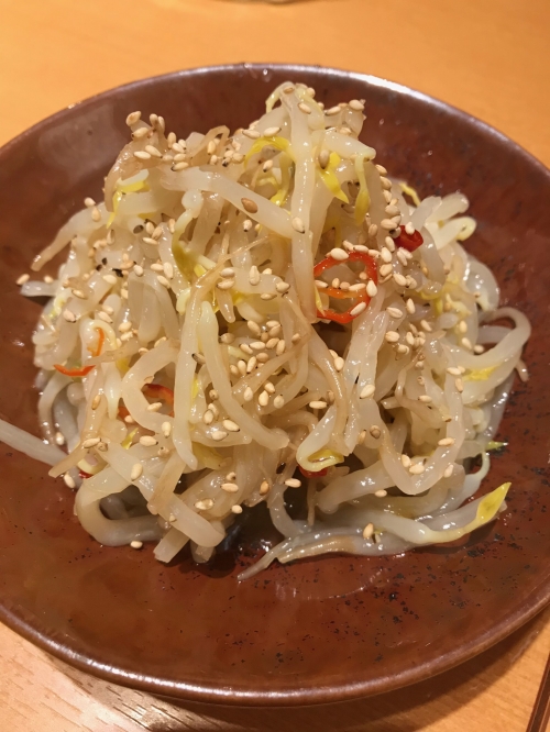 パクチーネギサラダ(¥280)は、パクチー好きの女子に人気。さっぱりとした塩味とパクチーの相性が抜群のサラダ。もやしのナムル(¥180)は、ピリ辛でお酒がすすむ一品。たっぷり入って、なんと¥180なんです。