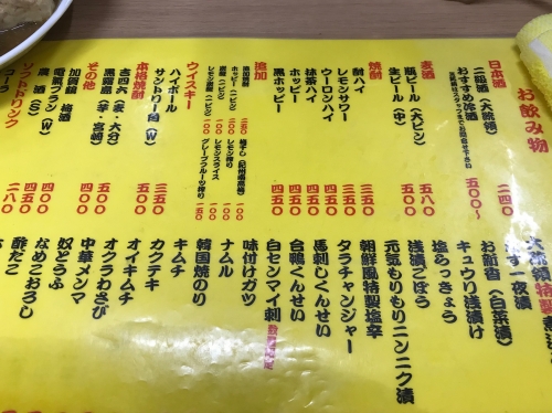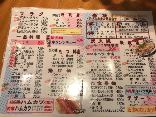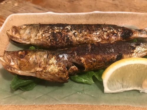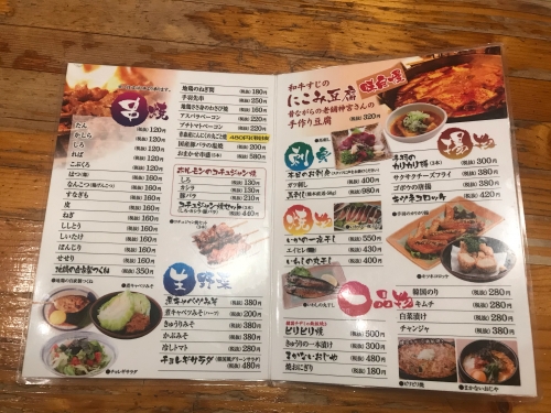 しろ、カシラ、豚バラがコチジャン味で頂けるコチジャン焼きセット(¥440)は、甘辛でお酒がすすんでしまいます。イワシの丸干し(¥400)は、丸々太ったイワシがふっくらと焼かれています。