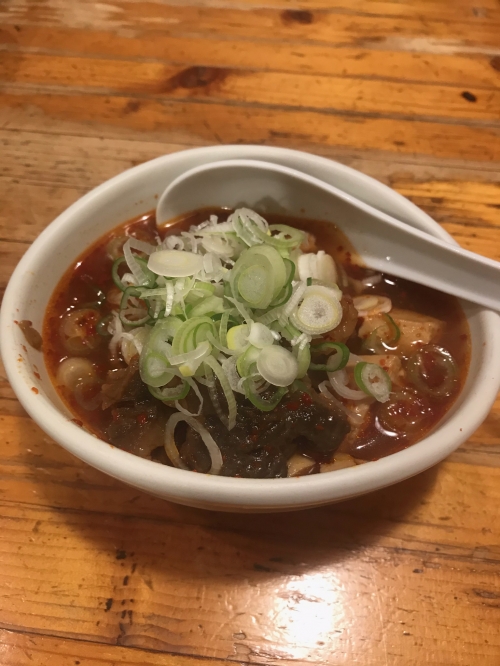 創業85年の手作り豆腐を使った、和牛すじの煮込み豆腐(¥330)が大人気のお店。味が染み込み、やみつきになる美味しさです。チョレギサラダ(¥480)は、ごま油の香りがほんのり香るサラダ。