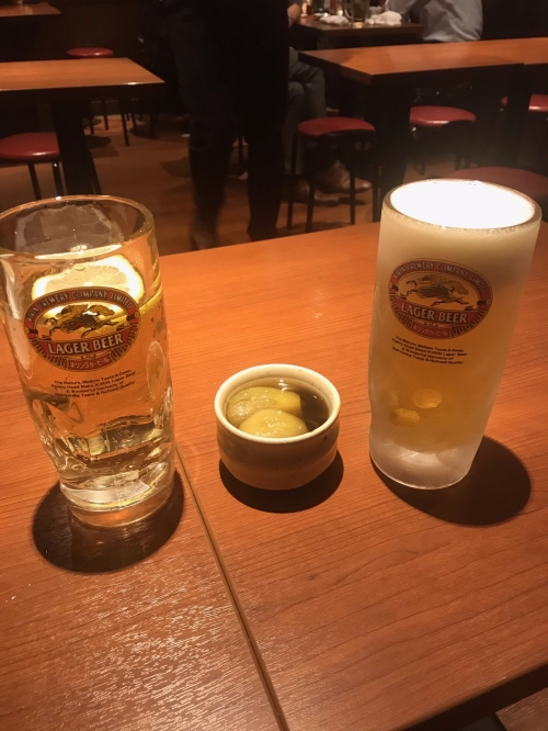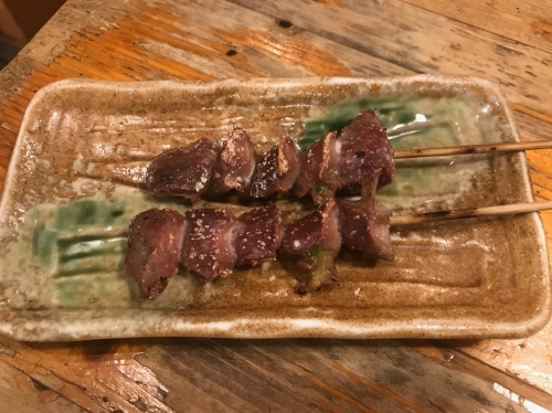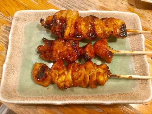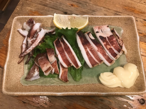 コリコリの砂肝は(¥160)、とても新鮮。さっぱりと塩で頂きましょう。いかの一夜干しは柔らかく、いかの甘みが凝縮した一品。