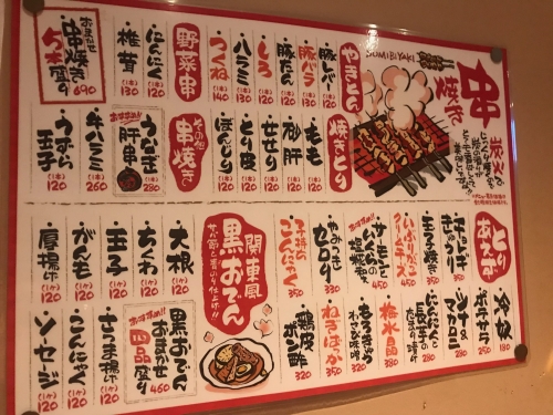 やきとんのお店なのに、おでんも人気のお店なんです。おでんは関東風で、たっぷりと味が染み込んでいる黒おでん。黒おでんおまかせ四品盛り(¥460)は、何が出てくるのかお楽しみの一品。