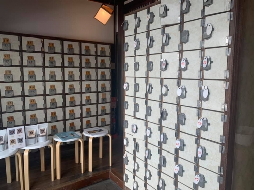 看板を確認して、いざお店に入ってみると、見えてくのは木札の下駄箱!
