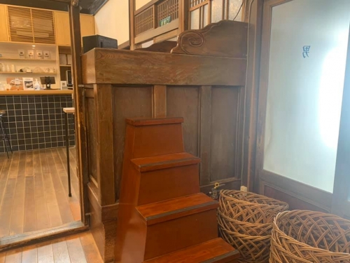 ここまで来ても、本当にカフェであっているのか、少し心配になるほどです。歴史が感じられる下駄箱に靴をあずけて、おそるおそる扉をくぐってみると、銭湯の脱衣所がそのまま活かされたカフェスペースがみえてきます。