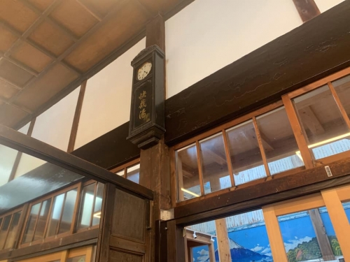 中央には番台も残されていて、それを仕切りに客席が分かれていて、当時は男用と女用の脱衣所として使われていたことが伺えます。