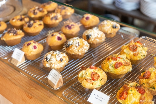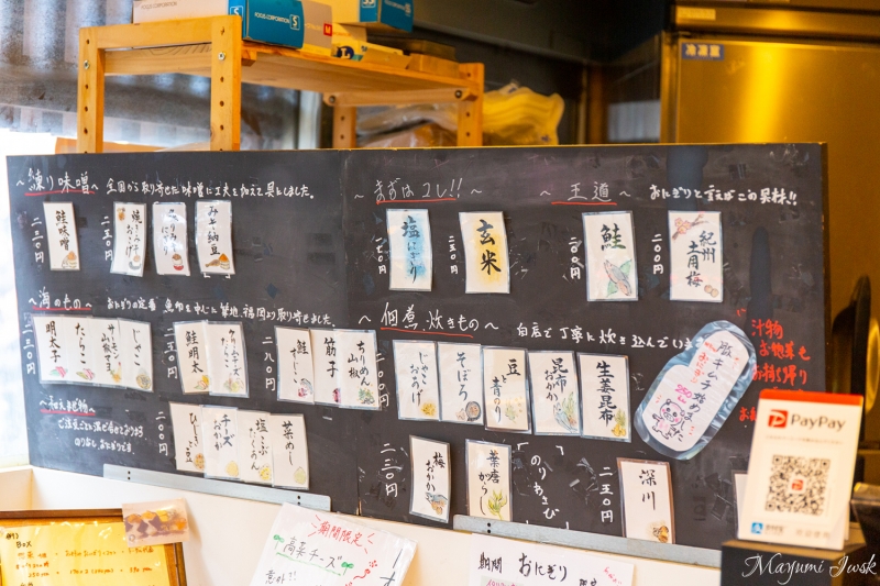 こちらは、おにぎりに「ちりめん山椒」と「鮭すじこ」、スープに自家製つくねの豚汁をチョイスした「Aセット」です。オーダーしてから一つ一つ丁寧に握られるおにぎりは、柔らかすぎず固すぎず絶妙な握り加減でとっても美味しい。温かいおにぎりと豚汁が、町歩きで疲れたお腹を癒してくれます。