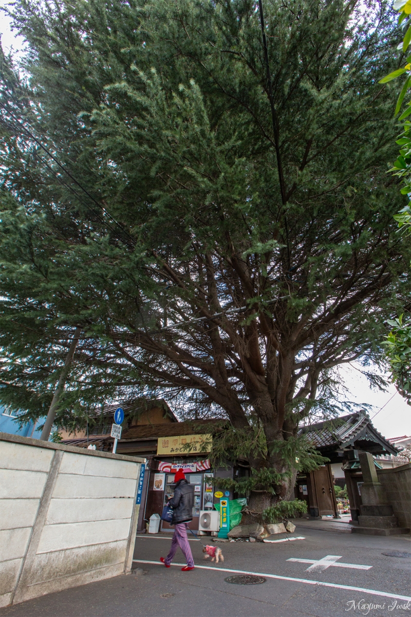 へび道を進み、寺社エリアの小道を抜けて行くと突如現れるのが、この大きなヒマラヤ杉と木の根元に寄り添うように建っている「みかどパン店」です。今では谷中のシンボル的な存在になった樹齢90年以上のヒマラヤ杉ですが、元々お店の脇で鉢植えで育てていたものだというからビックリです。