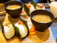 Aセットのおにぎりは「ちりめん山椒」と「鮭すじこ」、スープは自家製つくねの豚汁。