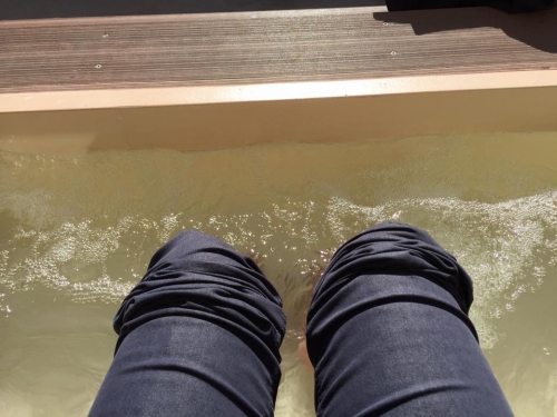 1階では熱海の絶景を眺めながら、ジェット付きの足湯に入ることができます。初島や伊豆半島をはじめ、天気がいい日は伊豆大島まで眺められます。足湯と絶景を満喫できるリラクゼーションをためしてみて。