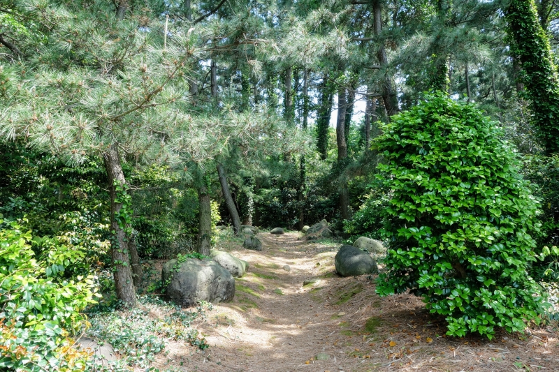 安心してください!こちらは、ちゃあんと観光用に整備された松林散策路です。踏み慣らされた道の両脇には、アクセントとなるようにか、人よりも大きな石がゴロンゴロンと置いてあります。