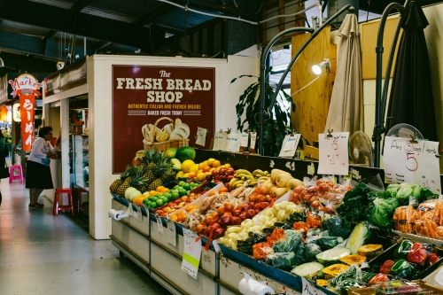 マーケット内には屋内エリアが存在し、そこでもさまざまなジャンルのショップが集められています。まずはスーパーマーケット。いくつかのセクションに分けられて野菜やフルーツが売られています。そして、多くの人たちが新鮮な食品を購入していく姿を見受けました。