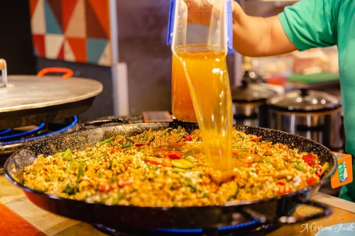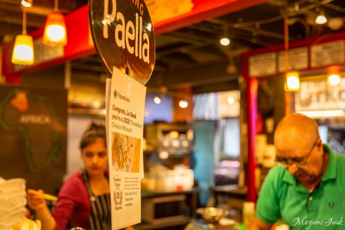 店頭ではスパイシーで香ばしい香りを漂わせながら、豪快に人気メニューの「アルジェリア風パエリア」が調理されています。独特のスパイスの香りに食欲が刺激され、見ているだけでお腹が空いてきます。他にもタジン鍋を使ったクスクス料理や、トマトソースに卵を落としたChakchouka(チャクチューカ)が人気メニューだそう。