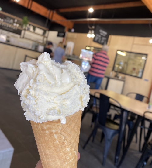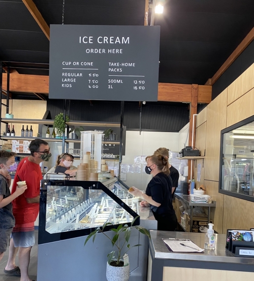 車窓から見える景色はどこにでも牛がいる、といった具合で、タスマニアでは酪農が盛んです。こちらのお店での人気は、放牧でのびのびと育ったタスマニアの牛のミルクで作られた、クリーミーで種類豊富なジェラート。