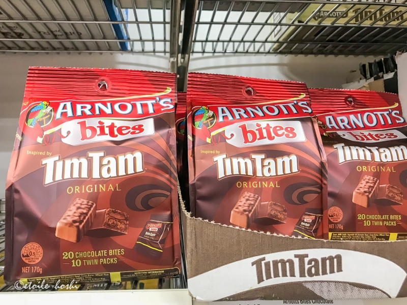 こちらは一口サイズになったティムタムが2つ個別包装されており、10パック入りでAU$4.40(約380円)なので、ばら撒きお土産に最適です。