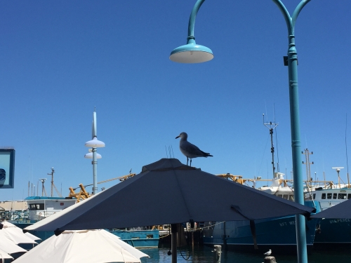 港を眺めながらいただく、新鮮な魚を使ったフィッシュ&チップスは最高!ビールも欠かせませんね。外のテラス席で、海鳥を警戒しつつ食事するのも港ならではの楽しみです。