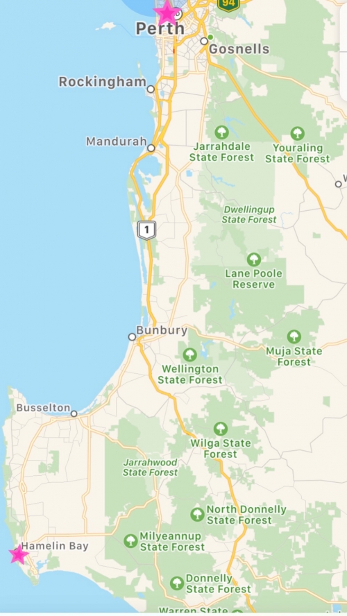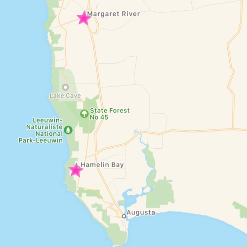ハメリンベイは、パースから南に260kmのマーガレットリバーを越して、約30分の場所にあります。