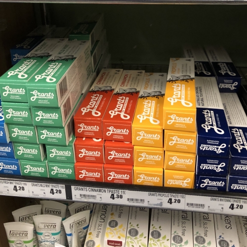 オーストラリア土産として人気のオーガニックの歯磨き粉も、品数豊富に取り揃えています。