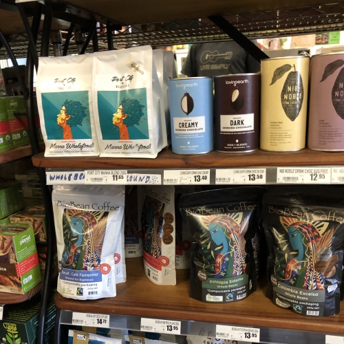 オーガニック系のコーヒーやチョコレートもあります。こちらでは、地元フリーマントルのカフェで提供されているオリジナルコーヒーが販売されています。