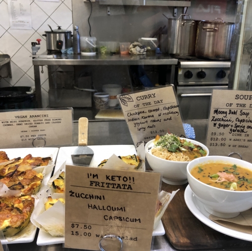 ランチの後は、引き続きバスで通った道をフリーマントルの中心部に向かって歩いて行きます。すると、地元市民で賑わっているお店「マナ・ホールフーズ&カフェ(MANNA Wholefoods and Cafe)」が見えて来ます。