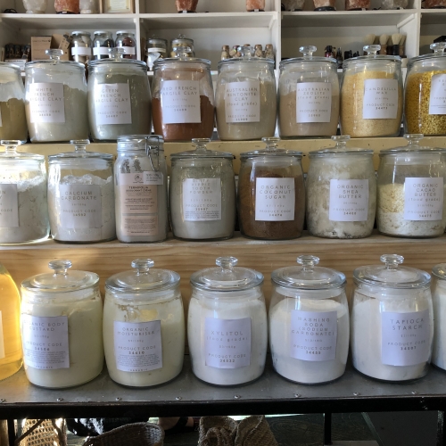 ショップセクションでは、自身で配合してオリジナルのナチュラルコスメを作ることができます。また、ナチュラルコスメの原料などの量り売りもされていて興味深いです。