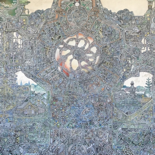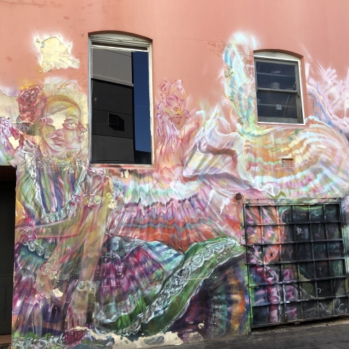 カプチーノ通りの老舗カフェ「Gino's」の裏手には、未来都市のようにも見える、非常に細かいタッチのウォールアート作品があります。
