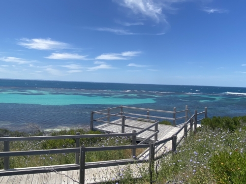 10月から11月頃に咲く、ロットネストデイジーというお花と海のコラボレーションが楽しめるポイントでもあります。