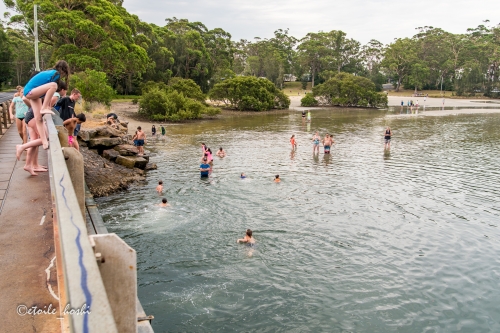 ハスキソンとビンセンティアの間を流れているMoona Moona Creek(ムナムナ・クリーク)では橋の上から子ども達がジャンプをして遊んでいたりSUPをしている人など家族連れの憩いの場となっています。