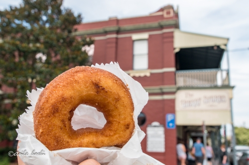 写真:トラベルライターシナモンシュガーのかかったシンプルなドーナッツはアツアツでふわふわ!$1.8 / 約150円