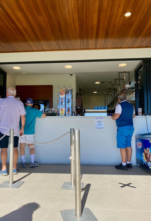 これがテーブルからの眺めです。このゴルフコースは高低差、木が少なく、砂地が多いオーストラリア有数の「リンクスコース」。ど真ん中に見えるのがマウントクーラムです。(マウントクーラムについてはこちらに詳細記事があります)景色もぜひ味わってみてください。