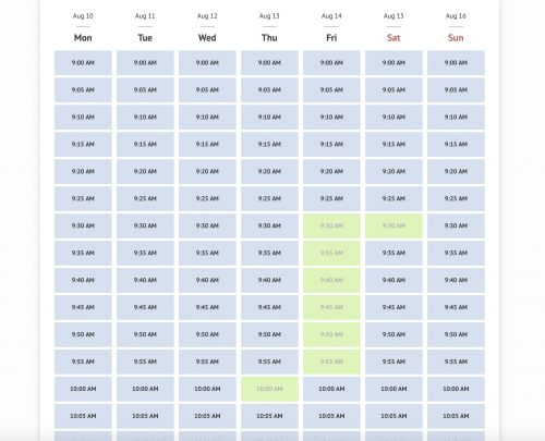 出典:maroochyriverminigolf.simplybook.me黄緑のボックスは予約済み(マルチリバー・ミニゴルフHPのスクリーンショット)
