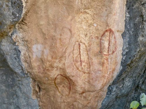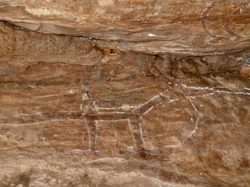 近くには太古の時代にオーストラリアの先住民アボリジニによって描かれた壁画があります。