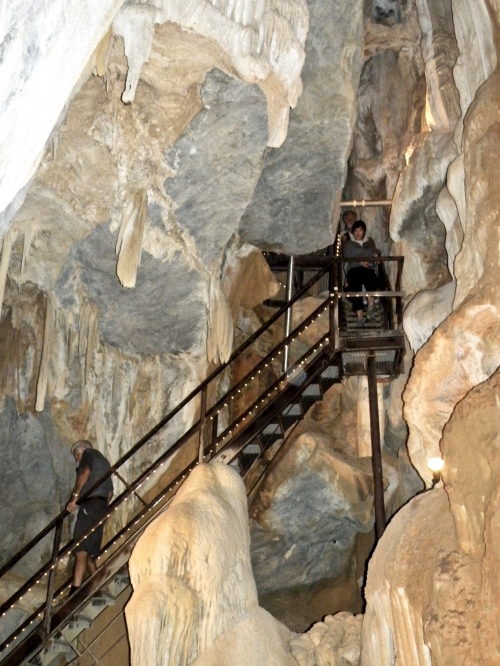 写真はTrezkinn Cave tourの様子です。貸し出された懐中電灯を持って、急なハシゴをぐんぐん下って行きます。これはやっぱり鍾乳洞と言うより、洞窟探検の気分です。中級とありますが、小さな子供でも問題なく歩ける難度です。ただし、足元は滑りやすいので、スニーカーなどで行った方がいいかもしれません。