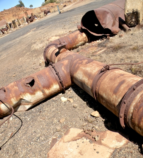こちらは洞窟や奇岩群のある場所からはちょっと離れていて、チラゴーの街と線路を挟んだ向こう側にあります。この一帯は、20世紀の初頭この地域は金・銀・銅・鉛などの鉱物の採掘で栄えていました。その鉱物から金属を取り出すための施設が「Smelter(精錬所)」です。廃坑に伴い、この施設も廃墟になっています。