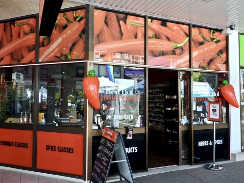 真っ赤な外観が印象的な「Red Hot Chilli Pepper」はスパイスを扱うお店で、いろいろな香辛料を使った料理や、香辛料のブレンドなどを教えるクラスを開催していたり、カフェも併設しています。オレンジ色の看板の「Amazen!」は世界中のボードゲームを集めたオモチャ屋さんです。