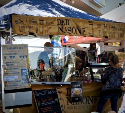 こちらは珍しいイタリアのストリートフード屋台。イタリアパンのフォカッチャにチキンのトマト煮、ラムのカチャトーラなどを挟んだ「Roman Pocket」、フライドポテトにミートソース、自家製パルメザンチーズソースをかけた「Loaded Chips」などを売っています。