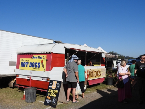 宿泊先にキッチンがあれば、野菜や魚を買って料理もできますが、キッチンがなければ、食べ物屋台でお腹を満たしましょう。朝食の定番ベーコン&エッグバーガーから、オーストラリア人が大好きなミートパイ、そして下の写真のようなヘビーな朝食もありますから、お腹を空かせて行きましょう。