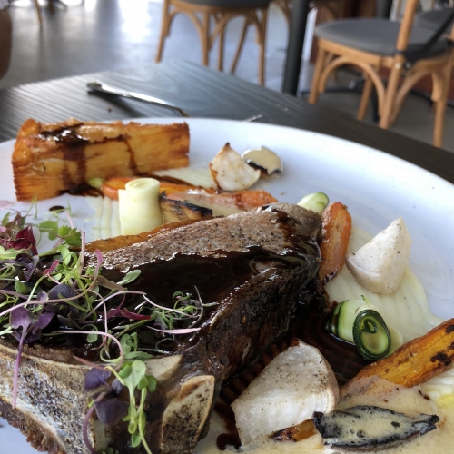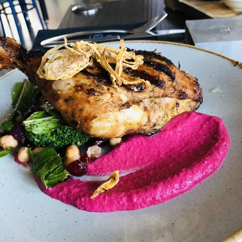 ビーツのペーストのソースがカラフルな鳥モモ肉のローストやお魚料理など、本格的だけど、カジュアルなプライスでお食事を楽しむことができます。また、ワギューバーガーも人気のメニューのひとつです。