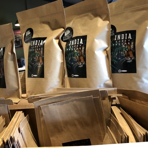このように豆の状態を量り売りで、お好きなものを選んだら、その場で挽いてシールドパッキングしてくれます。