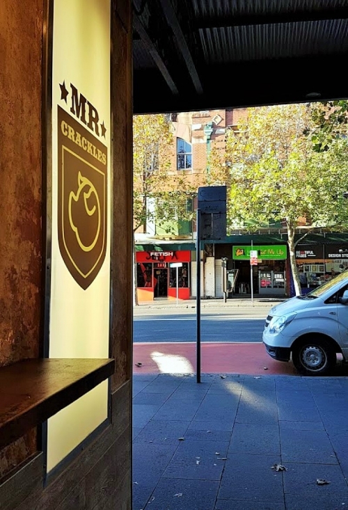 オーストラリアでは豚の皮がカリッカリになったものを、クラックルズと呼びます。なぜそう呼ぶのか、擬音語なのか真意は定かではありませんが。そのクラックルを思う存分楽しめるサンドを、朝の4:30まで売っているのがこのお店です(金土曜日のみ延長営業)。