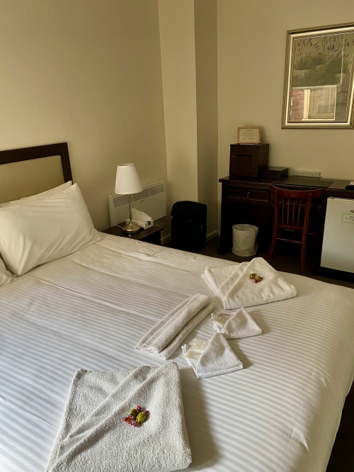 こじんまりとした部屋や家具は、50年以上の歴史を感じさせる風合いですが清潔で、冷蔵庫、ヘアドライヤー、TV、ティーセット(ケトル、コーヒー、紅茶、クッキー)など、ホテルとして必要なものは全て揃っています。