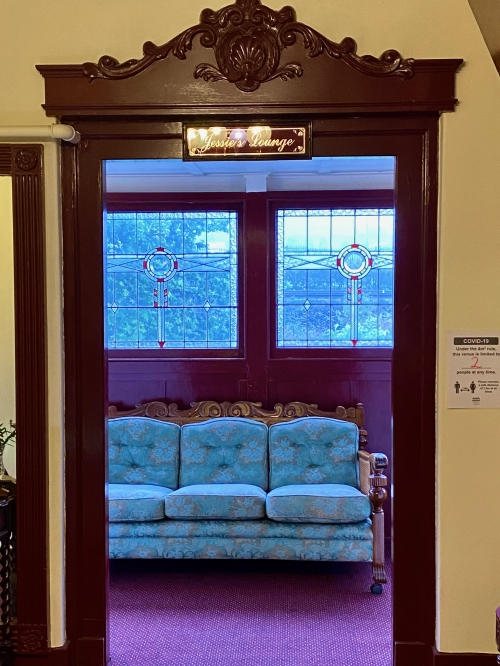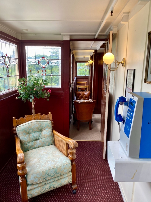 ラウンジと図書館の他にも各階に小さなラウンジがあります。ステンドグラスも家具も、とても素敵です。