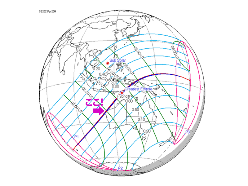2023年4月20日の皆既日食は主にインドネシアと西オーストラリアに挟まれた場所で見られましたが、中でも東ティモール、西パプアの一部と西オーストラリアの北西部に突き出た半島のエクスマウスという超ピンポイントな場所では、太陽と月の大きさがほぼ同じになることから金環皆既日食(ハイブリッド日食)という、十数年に一度と言われる非常に珍しい現象が見られました。